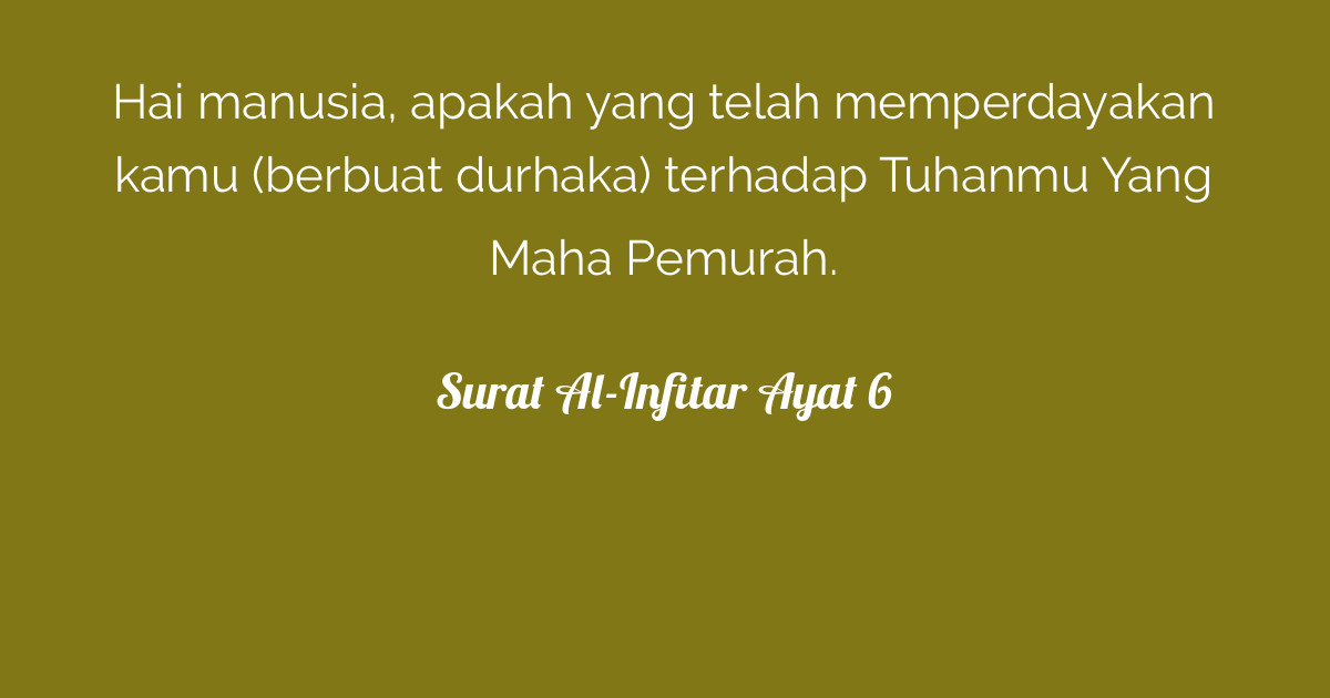 إِذَا السَّمَاءُ انفَطَرَتْ ﴿١﴾ وَإِذَا الْكَوَاكِبُ انتَثَرَتْ ﴿٢﴾ وَإِذَا الْبِحَارُ فُجِّرَتْ ﴿٣﴾ وَإِذَا الْقُبُورُ بُعْثِرَتْ ﴿٤﴾. Surat al infitar by muhammed al mohaisany. Copy advanced copy tafsirs share quranreflect bookmark. This set is often saved in the same folder as. Baca surat al infitar lengkap bacaan arab, latin & terjemah indonesia.